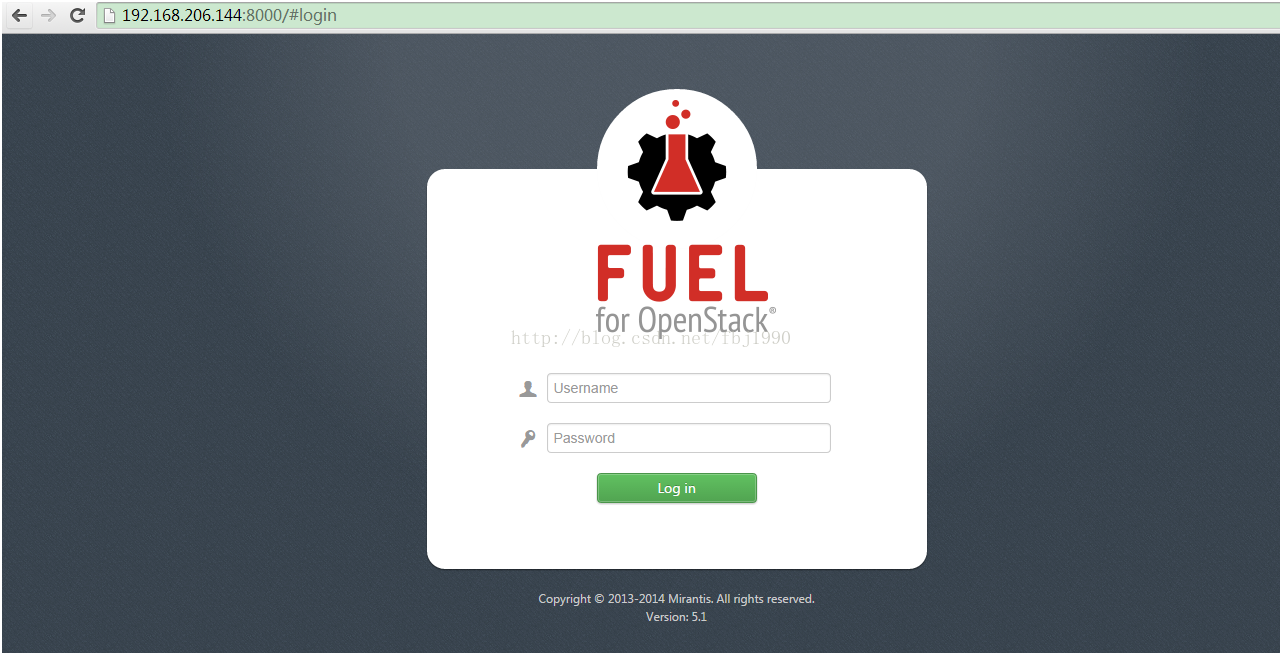 在浏览器中输入192.168.206.144:8000登录Fuel dashboard