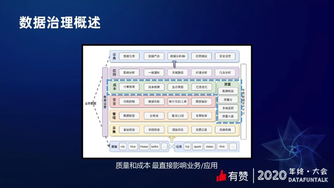 通过数据采集、数据管理,然后做各种质量监控和安全审计,把我们各种数据相关的东西当做是数据资产。