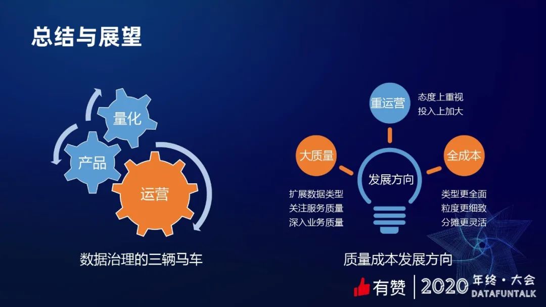 质量成本,其实是围绕着量化、产品以及运营这三个方面进行的,这也是数据治理的三辆马车。量化是为了让大家更直观地感受到当前的质量、成本现状,有哪些问题。让大家了解之后需要通过产品作为载体去支持大家做降本以及分析的需求。有了产品之后,还需要通过有效的运营手段,把这一套降本机制,以及提升大家成本意识的意图,给跑起来,最终形成一个良性的循环。