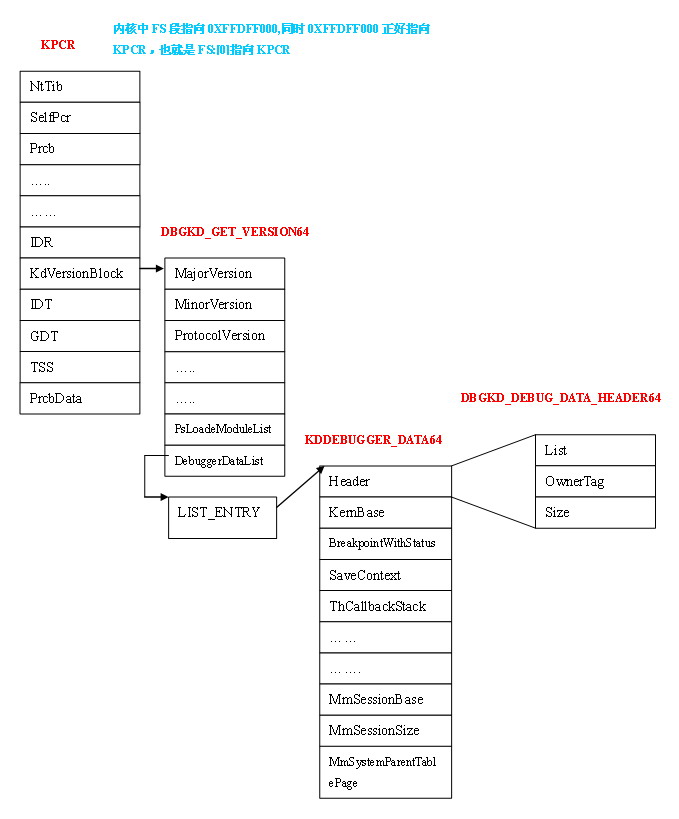 本文是根据网上的两篇文章《Finding some non-exported kernel variables in windows xp》和《Getting Kernel Variables from KdVersionBLOCK, Part 2》得出的结果,作的总结。