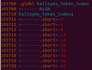 kallsyms_token_index数组中存放的也是索引,它索引的是kallsyms_token_table
