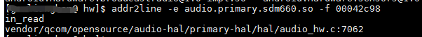 执行:addr2line -e audio.primary.sdm660.so -f 00042c98