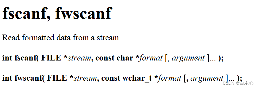 如此一来fscanf的功能就很明确了——从一个输入流中读取数据到目标变量中。