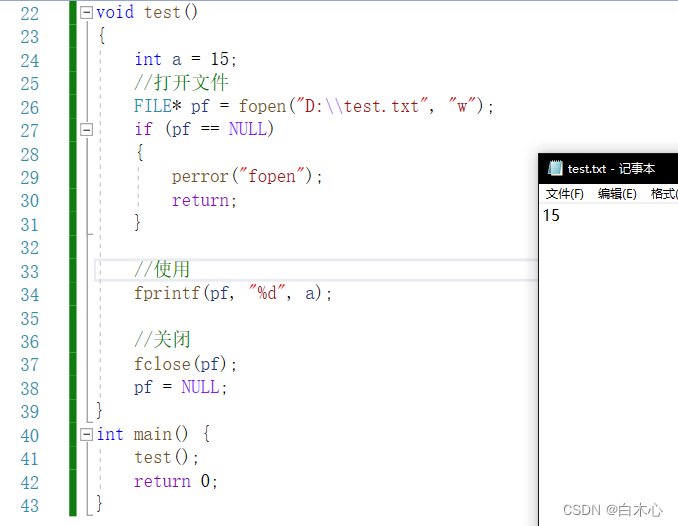 同理,fprintf的功能即为将a中的数据打印进目标文件中。用例如下: