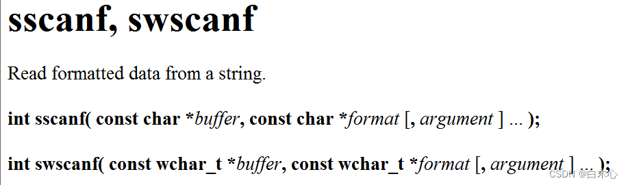 而sscanf和sprintf两个函数与上述的区别则在于,这两个函数并非从流中读取写入数据,而是从字符串中读取写入格式化的数据。
