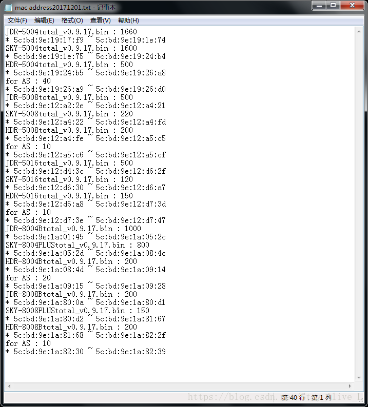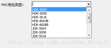 其中JDR-5004为mac地址的类型,把这些类型读取出来添加到下拉列表中: