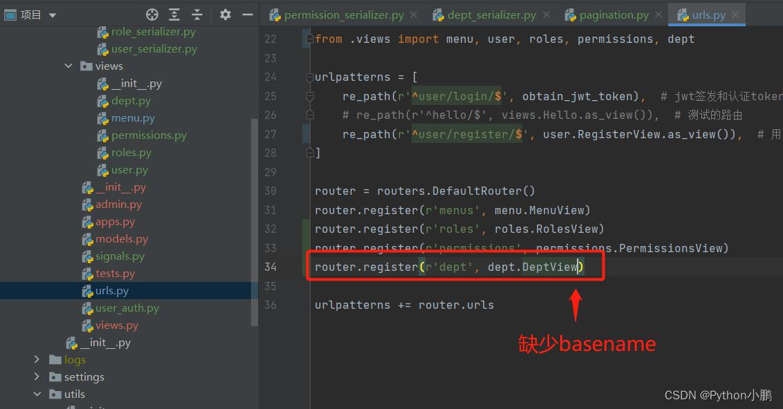 在views中去掉了queryset属性,改用get_queryset()方法,此时basename这个值必须补充!!