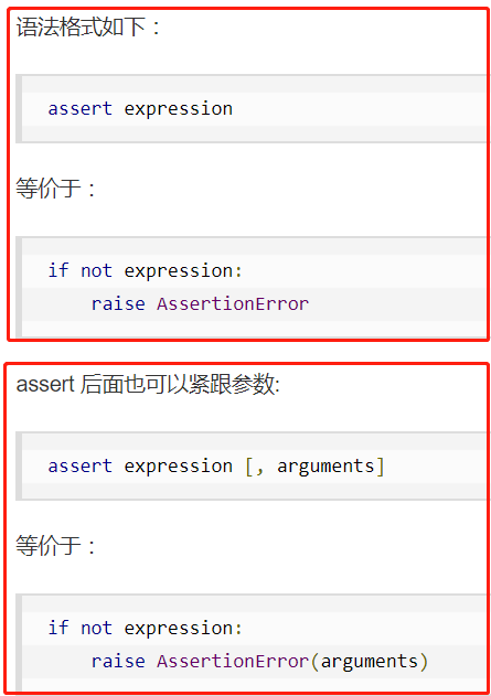 assert 1==2, '1 不等于 2' #>>>报错AssertionError: 1 不等于 2