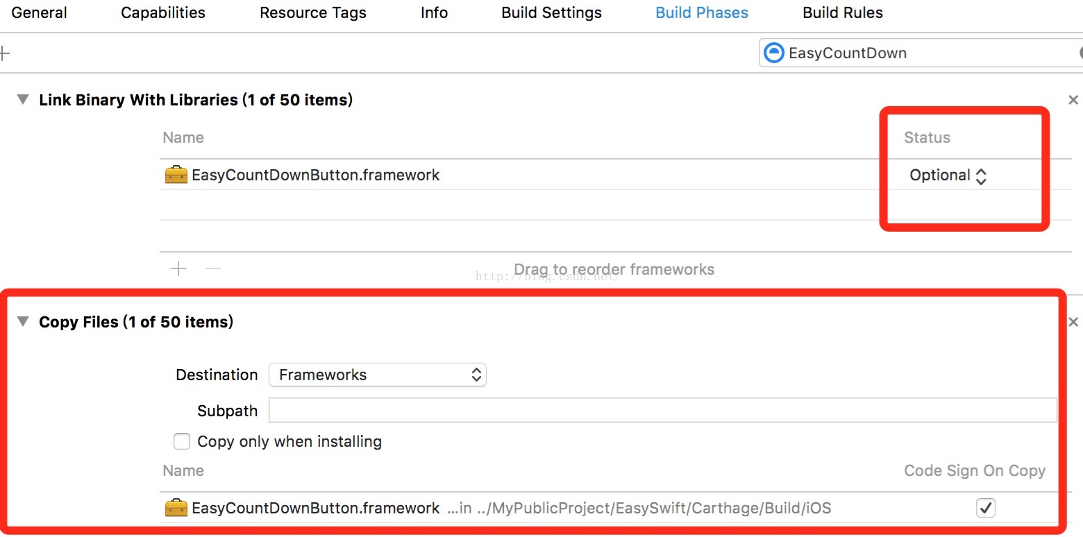 dyld: Library not loaded: @rpath/EasyCountDownButton.framework/EasyCountDownButton