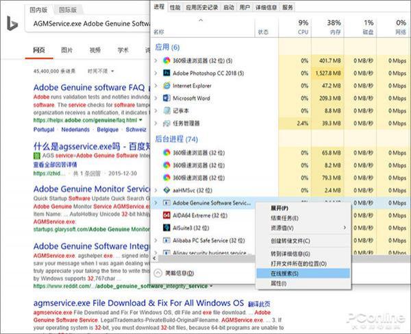 以往在系统中发现一个可疑进程,通常是在搜索引擎输入进程的名称以搜索,其实 Win10 任务管理器也有一个人性化的改进,即直接通过进程列表右击选择 " 在线搜索 ",直接借助网络迅速判断进程是否有问题。