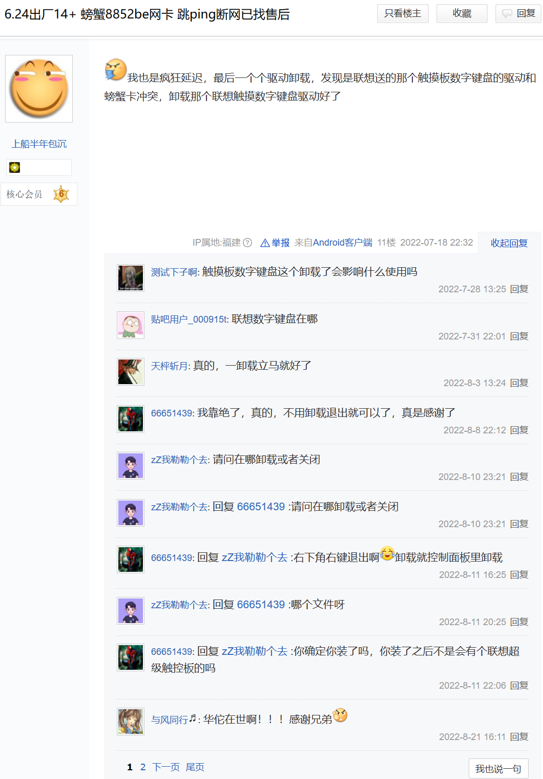 6.24出厂14+ 螃蟹8852be网卡 跳ping断网已找售后【thinkbook吧】_百度贴吧 (baidu.com)