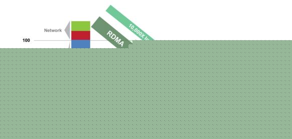 传统上,访问硬盘存储需要几十毫秒,而网络和协议栈需要几百微妙。这时期,往往使用 1Gb/s 的网络带宽,使用 SCSI 协议访问本地存储,使用 iSCSI 访问远端存储。而在使用 SSD 后,访问本地存储的耗时大幅下降到几百微秒,因此,如果网络和协议栈不同样提高的话,它们将成为性能瓶颈。这意味着,网络需要更好的带宽,比如40Gb/s 甚至 100Gb/s;依然使用 iSCSI 访问远端存储,但是 TCP 已经不够用了,这时 RDMA 技术应运而生。RDMA 的全称是 Remote Direct Memory Access,就是为了解决网络传输中服务器端数据处理的延迟而产生的。它是通过网络把资料直接传入计算机的存储区,将数据从一个系统快速移动到远程系统存储器中,而不对操作系统造成任何影响,这样就不需要用到多少计算机的处理功能.它消除了外部存储器复制和文本交换操作,因而能腾出总线空间和CPU 周期用于改进应用系统性能. 通用的做法需由系统先对传入的信息进行分析与标记,然后再存储到正确的区域。