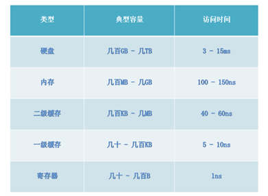 存储器是分层次的,离CPU越近的存储器,速度越快,每个字节的成本越高,同时容量也因此越小。寄存器速度最快,离CPU最近,成本最高,所以以个数容量有限,其次是高速缓存(缓存也是分级,有L1,L2等缓存),再次是主存(普通内存),再次是本地磁盘。