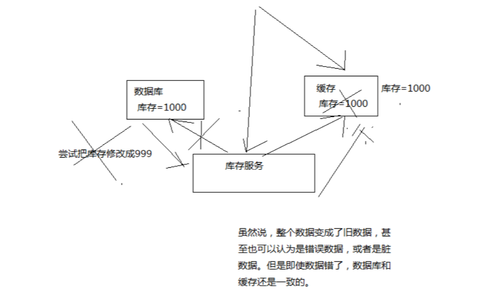 数据变更的程序完成了数据库的修改,此时数据库是 999,缓存中却是 1000,完了,数据库和缓存中的数据不一样了。