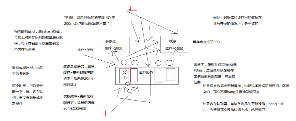 单机器,20个 内存队列,每个内存队列,可能就积压 5个 写操作,每个写操作性能测试后,一般在 20ms 左右就完成,那么针对每个内存队列中的数据的读请求,也就最多阻塞一会儿,200ms 以内肯定能返回了