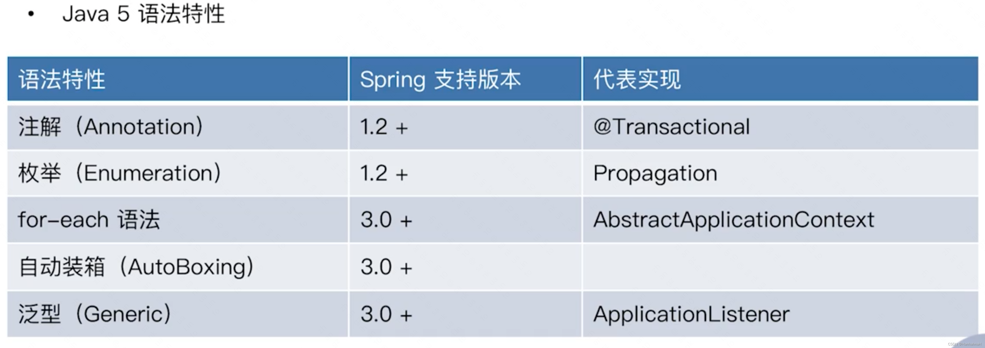 | 3.x 大量注解 | 5+ 注解 枚举 | J2EE 1.4 Java EE 5 |