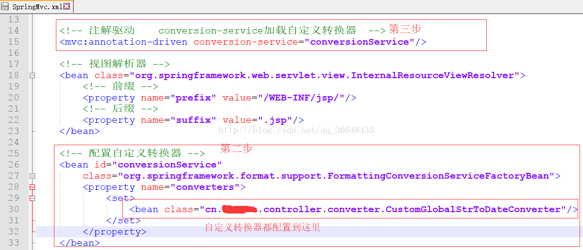 第二步在springmvc配置文件中中配置自定义转换器