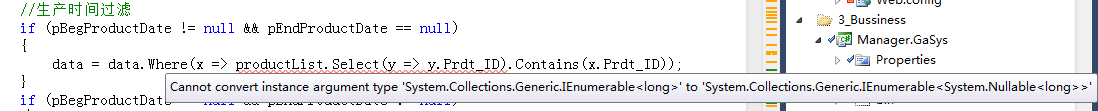 而实际需要处理的时候,是long类型的,而不是long?类型,如下是一个linq语句用到的过滤: