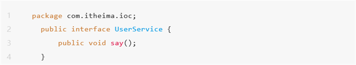 1、在com.itheima.ioc包中,创建接口UserService,在接口中编写一个say()方法: