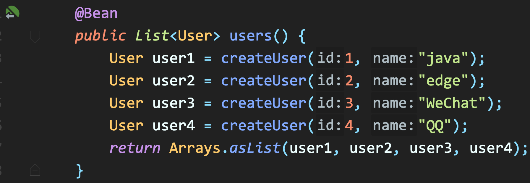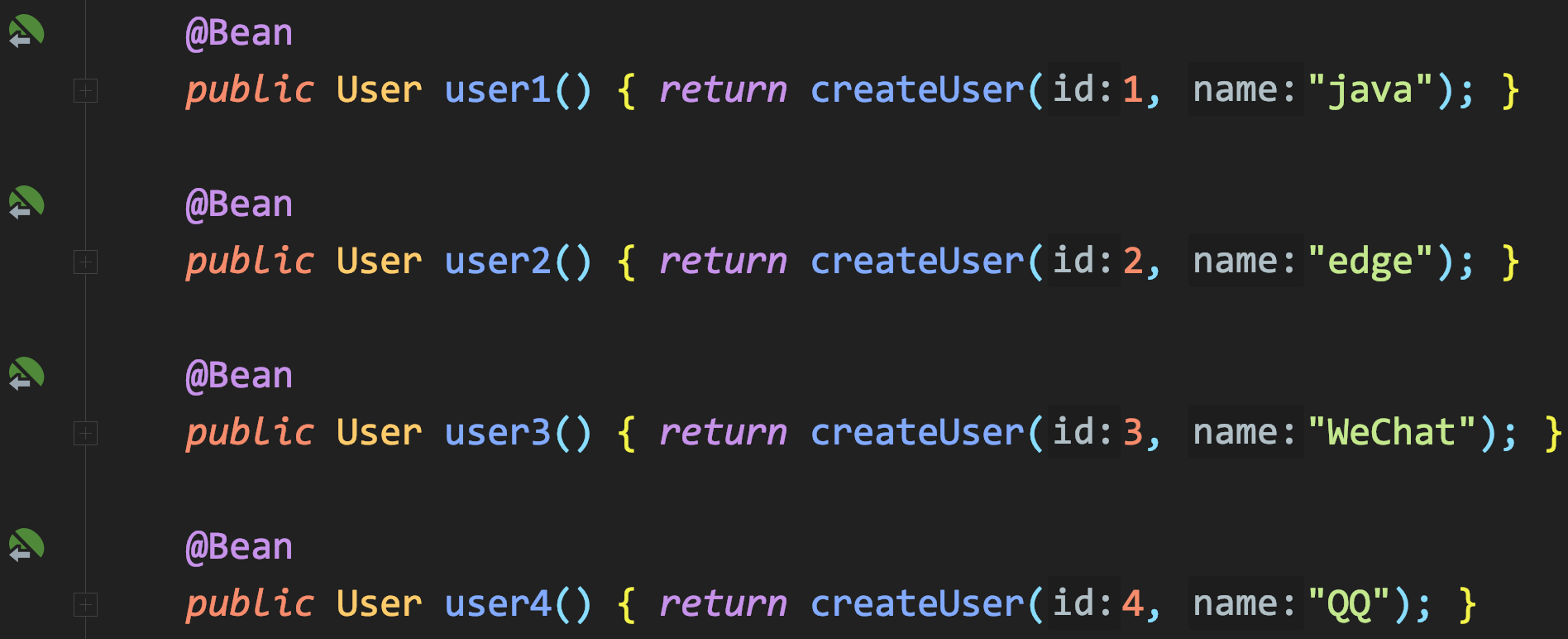 有了集合类型的自动注入后,即可收集零散的用户Bean: