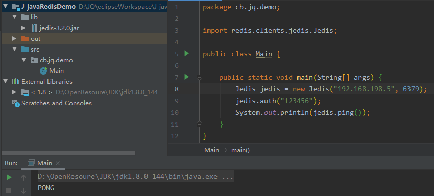 System.out.println(jedis.ping());