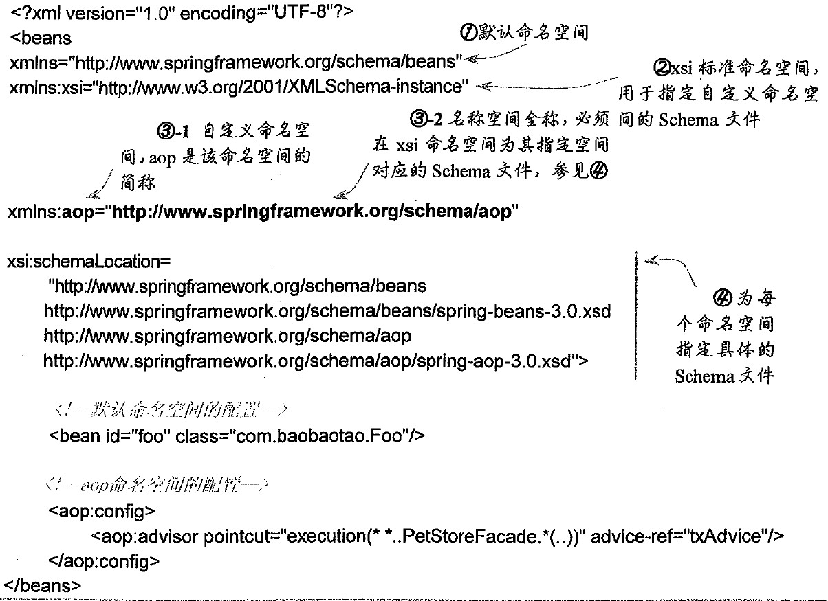 对于基于XML的配置,Spring 2.0以后使用Schema的格式,使得不同类型的配置拥有了自己的命名空间,是配置文件更具扩展性。