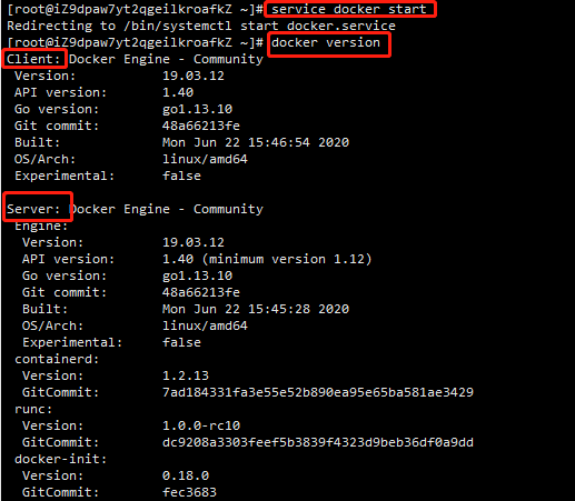 docker本身是CS架构,安装时会把客户端和服务器端都安装好,上图中使用的docker version命令就是客户端提供的