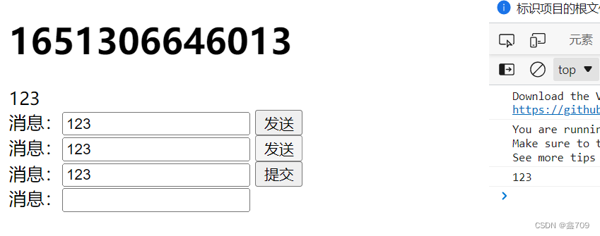 消息:<input type="text" v-model="msg" />