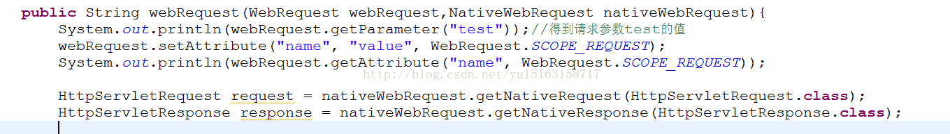 WebRequest是springmvc 提供的统一请求访问的接口,不仅仅可以访问请求相关数据(如参数区数据、请求头数据、但是访问不了cookie区数据),还可以访问会话和上下文中的数据;NativeWebRequest继承了WebRequest,并提供访问本地ServletAPI的方法