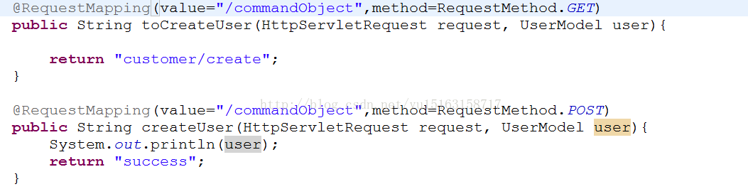 注意:返回值上的user会覆盖方法参数上的user2作为视图的模型名