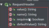 RequestHeader类下也包含四个参数(value(值)、required(必须)、defaultValue(默认值)、@RequestParam(请求的参数))