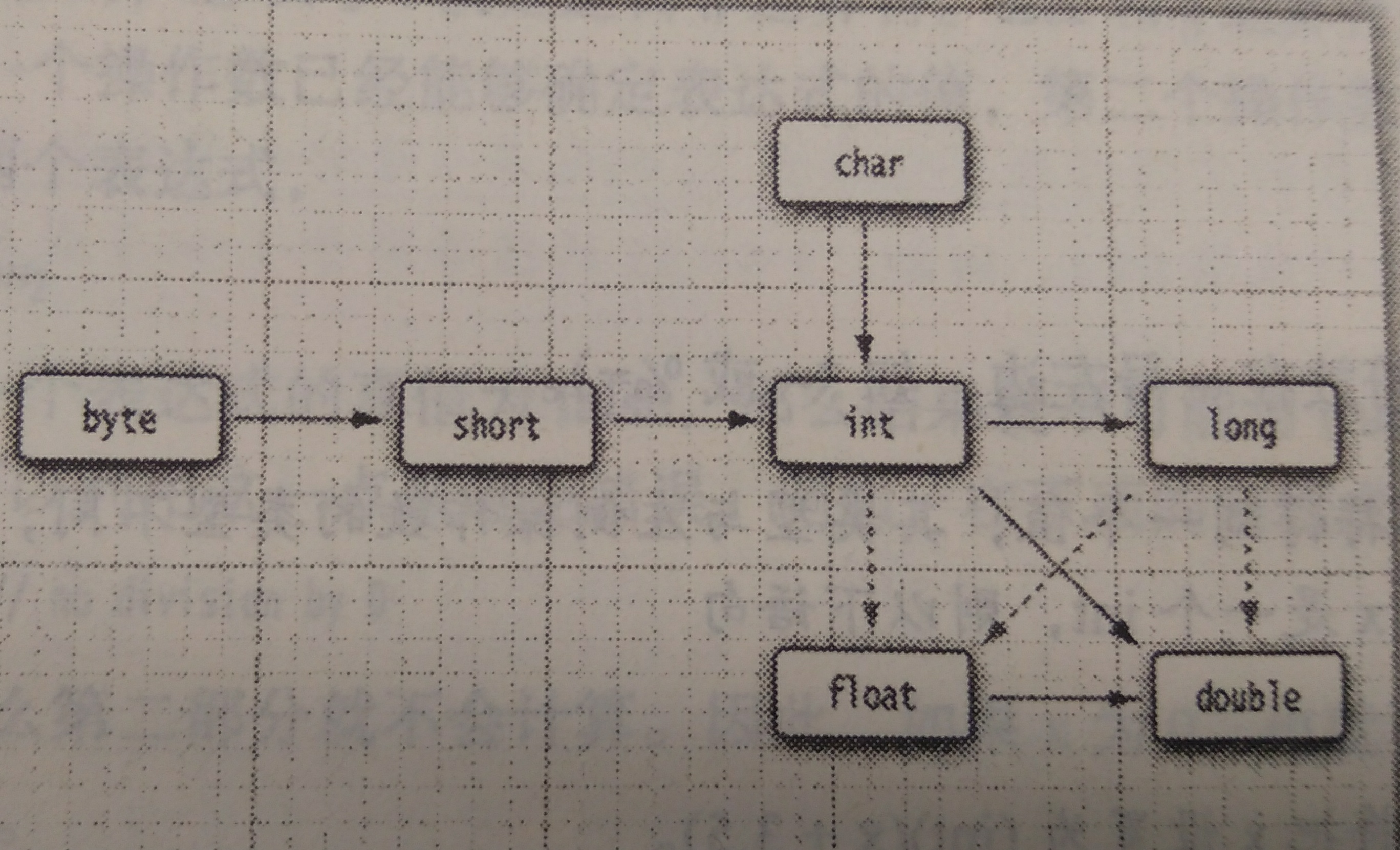 byte➡short,int,long,float, ordoubleshort➡int,long,float, ordoublechar➡int,long,float, ordoubleint➡long,float, ordoublelong➡floatordoublefloat➡double