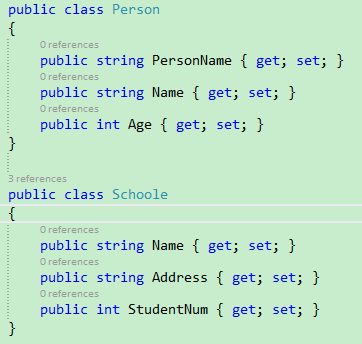 定义的两个类Person和Schoole(注意这两个类中都有Name属性)