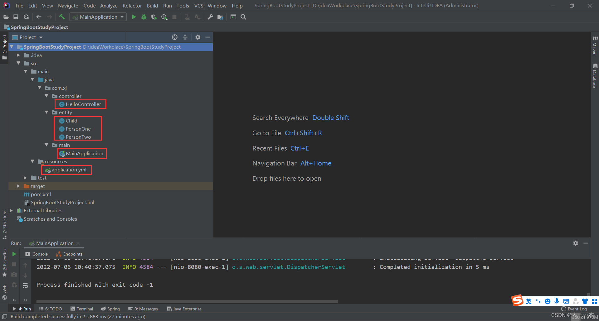 其中,application.yml 是一种使用 YAML 语言编写的文件,它与 application.properties 一样,可以在 Spring Boot 启动时被自动读取,修改 Spring Boot 自动配置的默认值。