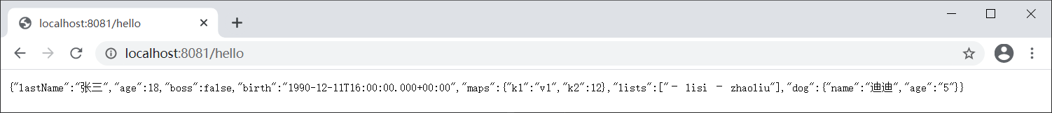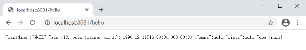3. 重启项目,使用浏览器访问 “http://localhost:8081/hello”,结果如下图。