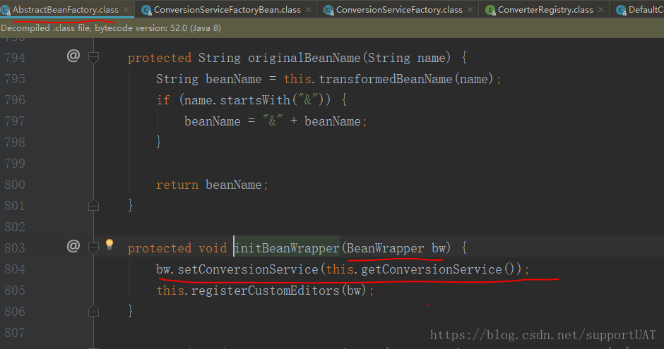 5、Bean的包装器BeanWrapper创建成功后,将调用initBeanWrapper()方法,设置ConversionService