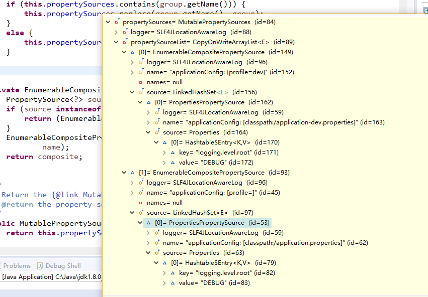 最后存储到了PropertySourcesLoader这个对象的private final MutablePropertySources propertySources;这个属性里面