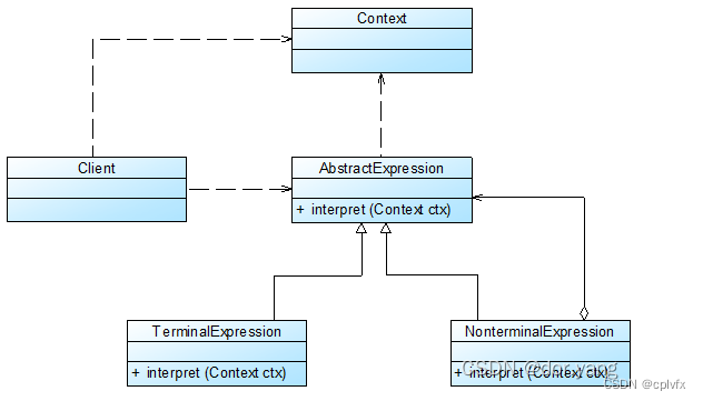 - 非终结部分需要两个抽象表达符号,递归进行interpret