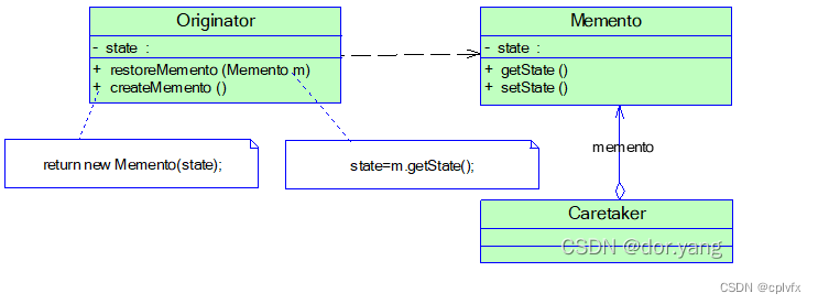 在不破坏封装的前提下,捕获一个对象的内部状态,并在该对象之外保存这个状态,这样就可以在以后将对象恢复到原先保存的状态。