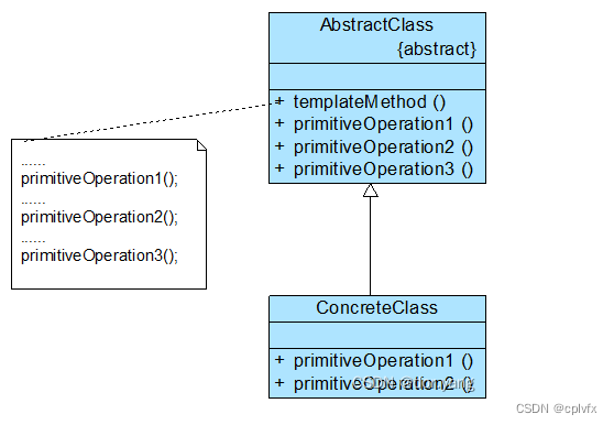 定义一个操作中算法的框架,而将一些步骤延迟到子类中。模板方法模式使得子类不改变一个算法的结构即可重定义该算法的某些特定步骤。