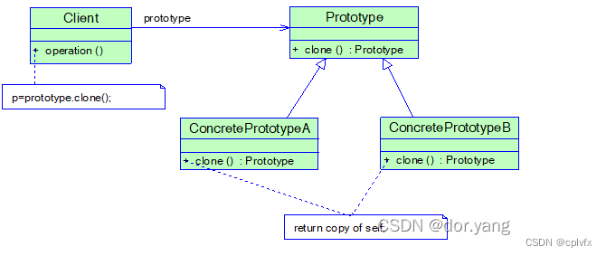 使用原型实例指定待创建对象的类型,并且通过复制这个原型来创建新的对象。