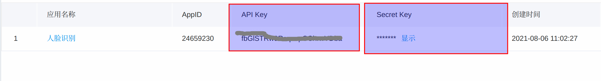 点击2处 进入应用列表 可以看到key 可通过后台的API Key和Secret Key 获得参数access_token
