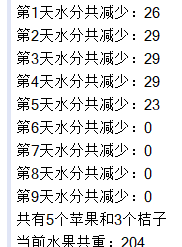 代码分析:这里水果放入为随机生成,假设考虑每两小时可选择是否放入水果及水果种类,按每六小时苹果重量减一,橘子重量每八小时减一
