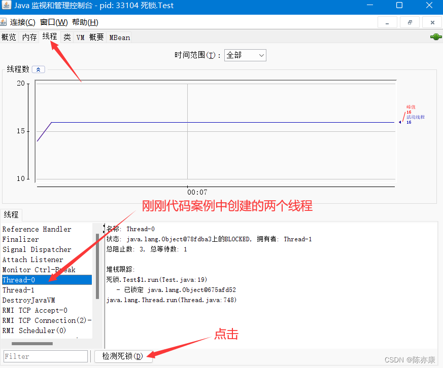 以上就是乐观小笼包最近收集整理的关于线程死锁的成因?如何查找并定位死锁,解决死锁?这里教你几招~什么是死锁?死锁代码案例:出现死锁的原因教你如何定位死锁位置~死锁解决方法的全部内容,更多相关线程死锁内容请搜索靠谱客的其他文章。