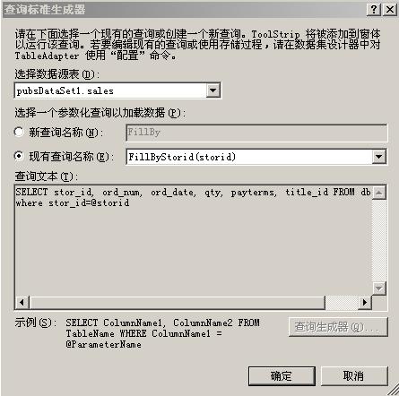 jobsTableAdapter是adapter名,FillByMax是新增查询起的名,pubsDataSet是dataset名,int.Parse(textBox1.Text)是给参数赋值。