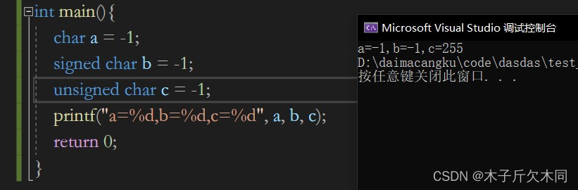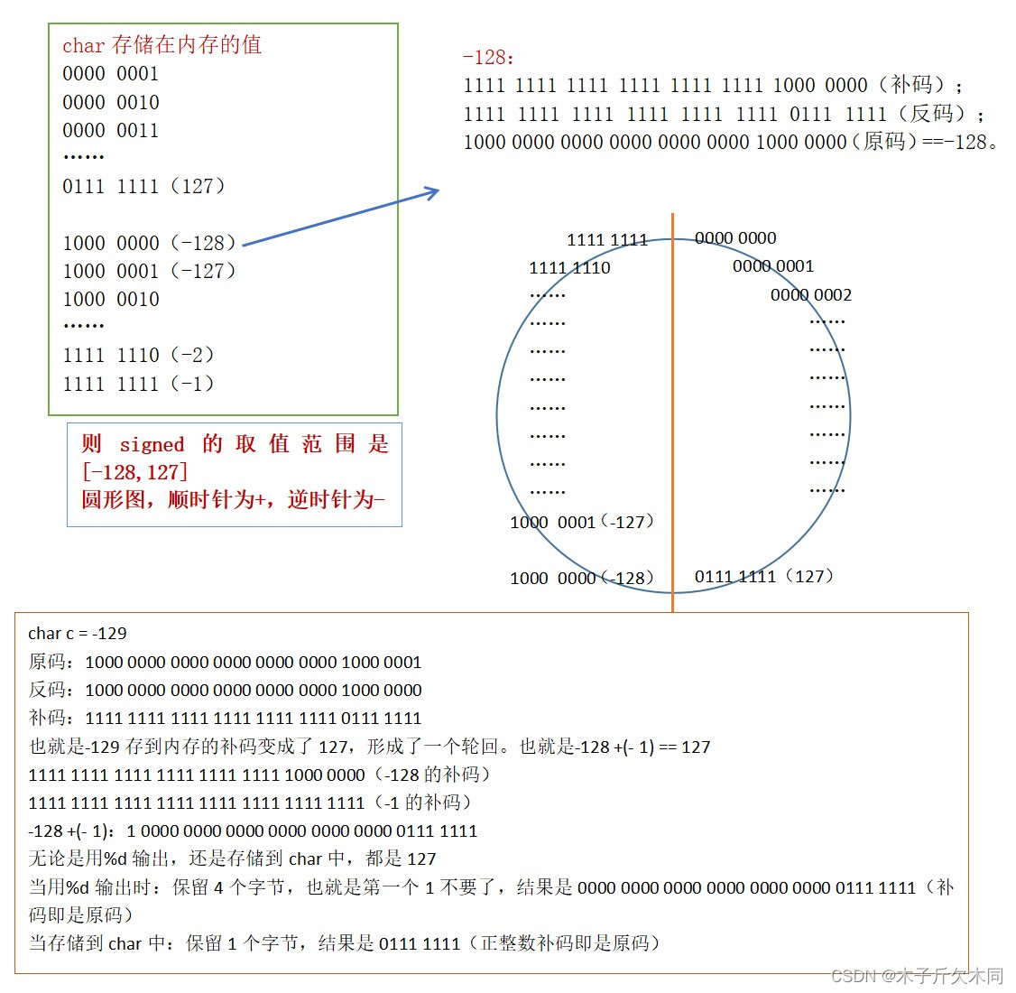 (1)char 到底是signed char 还是unsigned char ?C语言标准并没有规定,取决于编译器。vs2019规定了char为signed