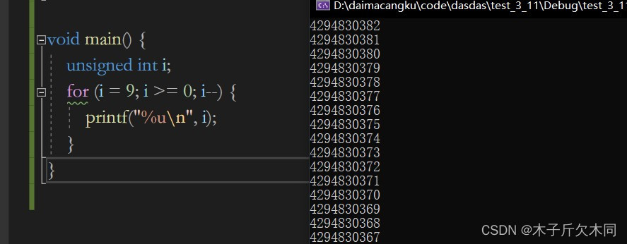 (1)i为无符号的i,那么也就是说无论i怎么减小,都不可能为负的