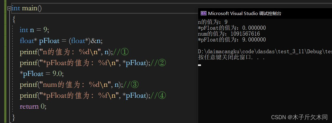 首先我们得知道指针类型的作用是什么,总共有两个作用:指针的类型决定了指针向前或者向后走一步有多大(跨过多少字节)、指针的类型决定了对指针解引用的时候有多大的权限(能操作几个字节)。那么就有个思路,我们定义一个int i = 1(对应存储在内存的二进制数为00000000000000000000000000000001);把i的地址赋值给一个char指针,因为是char类型的指针,那么他的解引用就只能操作1个字节。我们又知道了1的大端存储模式是0x00 00 00 01,小段存储模式是0x01 00 00 00。诶,我们就可以用char型指针来解引(解引用都是从低地址到高地址)用来读取该数第一个字节的数据,数据为1,那么编译器就为小段存储模式;如果数据为0,则为大端存储模式。