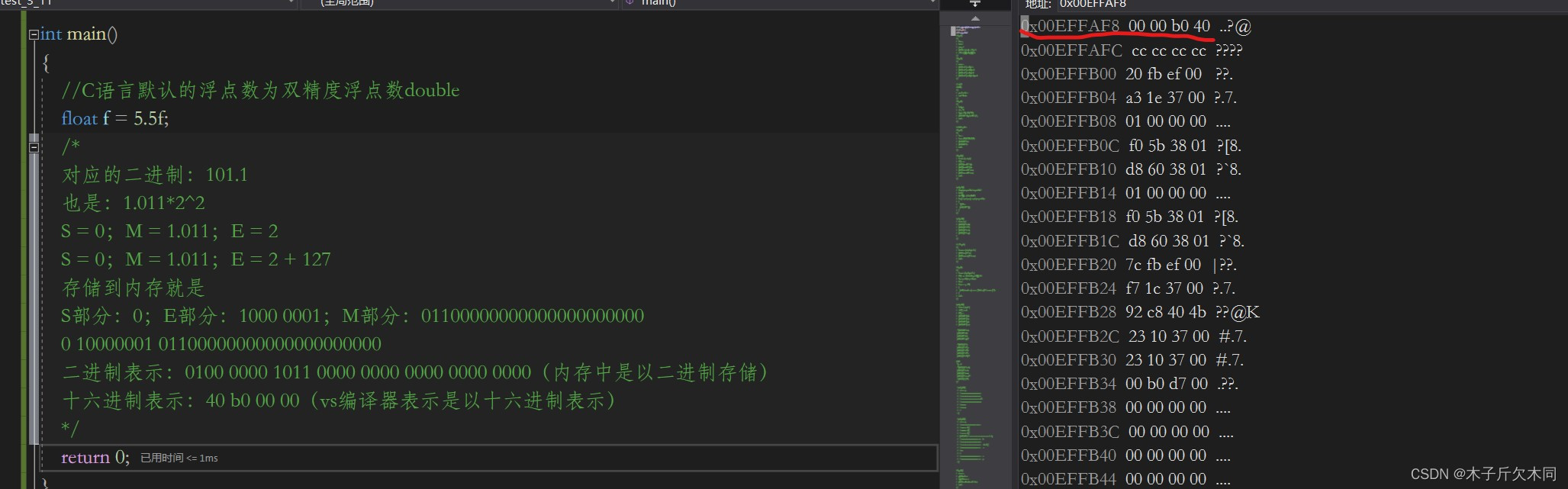 (3)总结:通过例1和例2的观察发现,输出的样子是什么由格式字符%d或者%u控制,也可以由char是否有符号来控制输出结果。如果是%d与unsigned char在一起,那么重点就在无符号char,毕竟%d和unsigned char两者都要满足,unsigned char感觉上是%d的真子集,所以就看最小的。当%u和signed char在一起时,就看%u,此时%u是signed char的真子集,就看%u了。(打印看printf,内存看类型)
