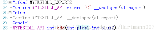 在MyTestDll.h文件中可添加如下代码,我们定义一个两数相加函数来验证